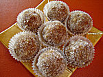 Zum Schluß 100 gr gemahlene Walnüse in einen Teller tun, und die Kügelchen drin wälzen.